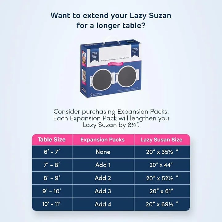 ASSEMBLE IN 2 MINUTES - Our extra large turntable is easy to assemble, use, and clean, making it the perfect addition to your dining table. No tools are required for assembly. Plus, we've specially designed the box to quickly and easily store your turntable after the meal.