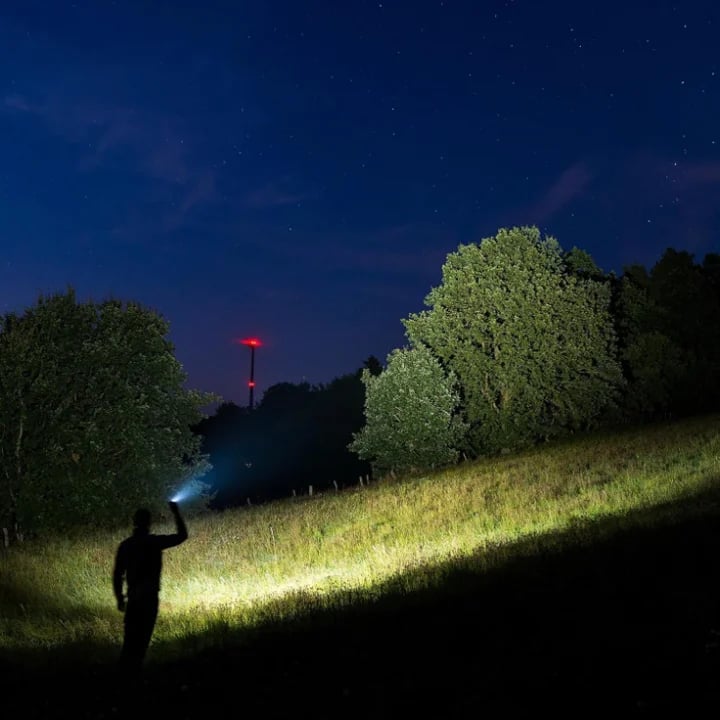 - The mini flashlight uses high-quality LED lamp beads with a maximum output of 2000 lumens and a range of 100 meters. It's suitable for camping accessories, survival equipment and other outdoor activities.