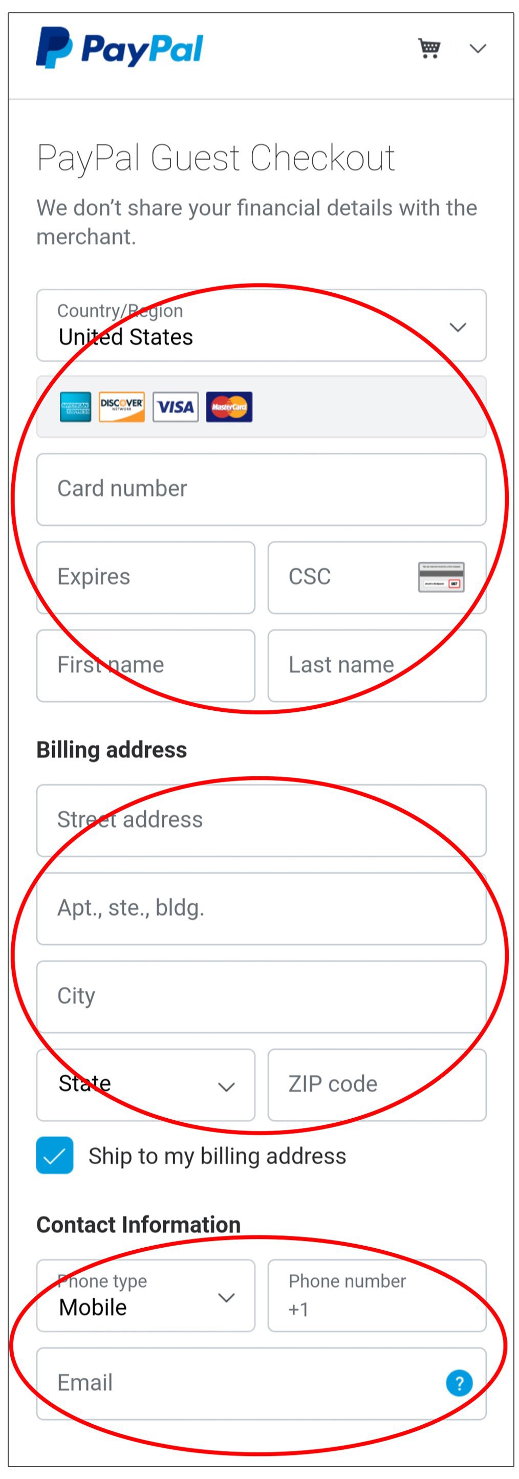 Enter your Payment details, your Billing Address, and your Contact Information.